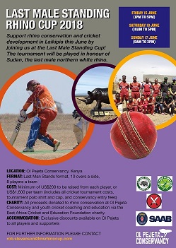 In June 2017, Last Man Stands will proudly team up once again with Ol Pejeta Conservancy, The Australian High Commission (Kenya), The East Africa Cricket & Education Foundation and The British Army to host the Last Male Standing Rhino Cup on the savannah plains of Kenya.Â